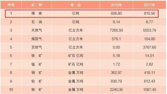 报告显示,截止到2017年底,我国煤炭查明资源储量为16666.73亿吨,增长4.3%;2017年煤炭新增查明资源储量为815.56亿吨。